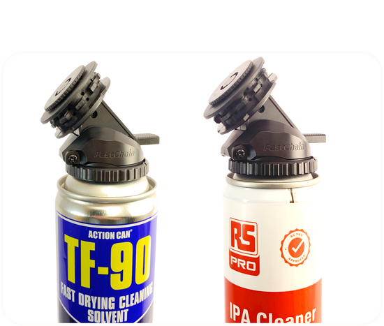 If you use an aerosol based wax lubricant, for ultimate convenience buy two FastChain’s, one for the solvent and the second for the wax lubricant.