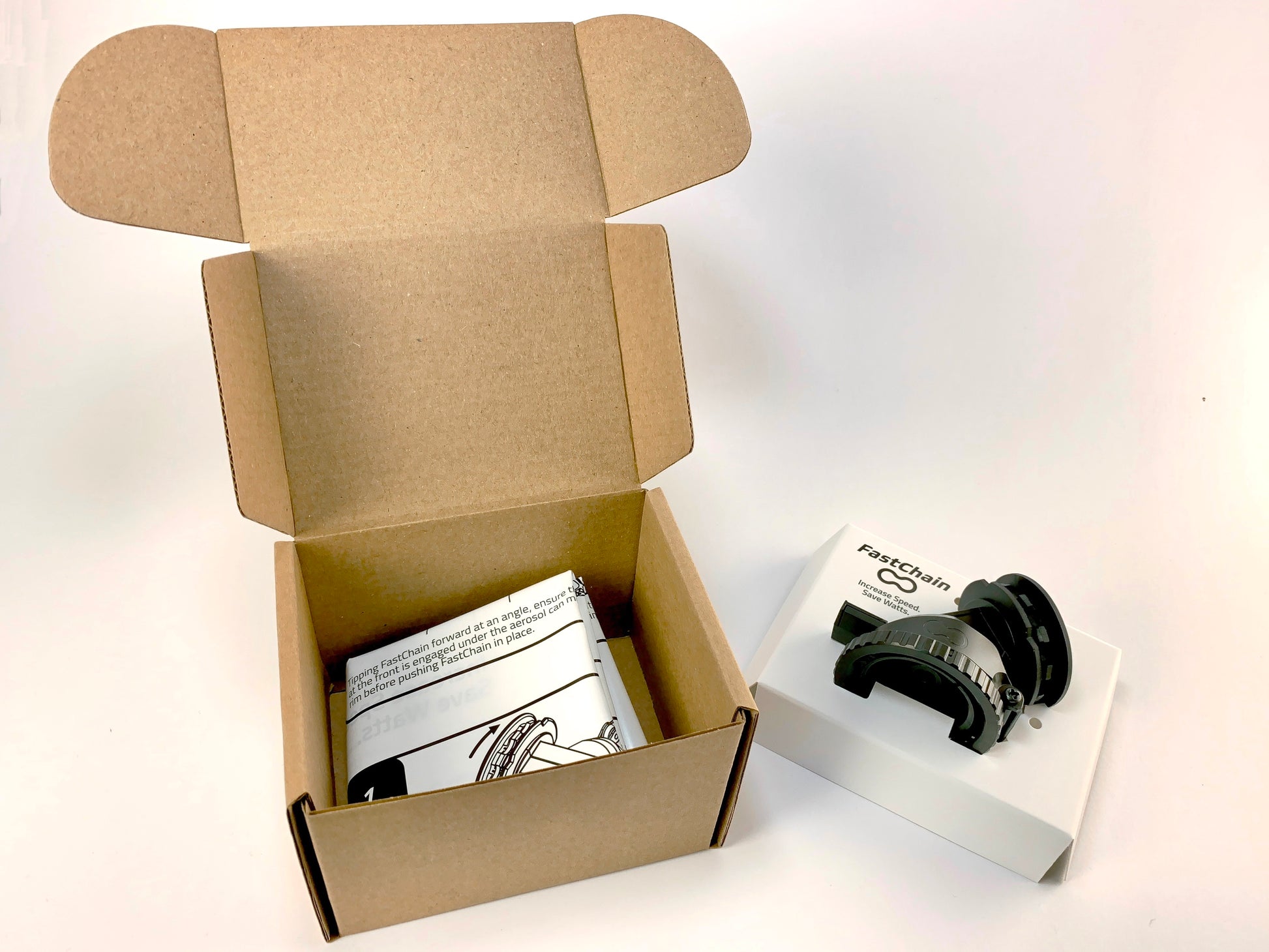FastChain directs aerosol based lubricant right through the links of your bike chain, cleaning, lubricating and returning it to top performing condition in seconds. FastChain is compatible with most aerosol lubricant cans with a 4mm fluid exit tube. FastChain cleans your bike chain where it counts for performance, between the links and is convenient enough it can be used between every ride or every other ride, ensuring chain performance is maximised on an ongoing basis.
